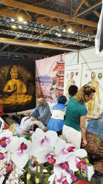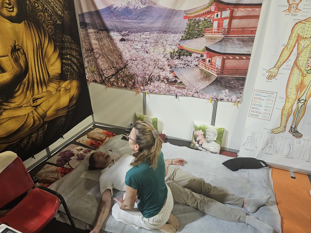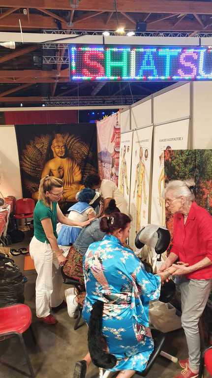 En collaboration avec l'Ecole de Shiatsu IMAE agréée par le SPS, j'ai pu faire profiter les aidants (visiteurs, familles des résidents de l'EHPAD, personnel soignant...) de séances découvertes de Shiatsu de 30 min dans une ambiance d'échange et de partage parmis les représentants de nombreuses associations de soutien et d'aide à la personne.